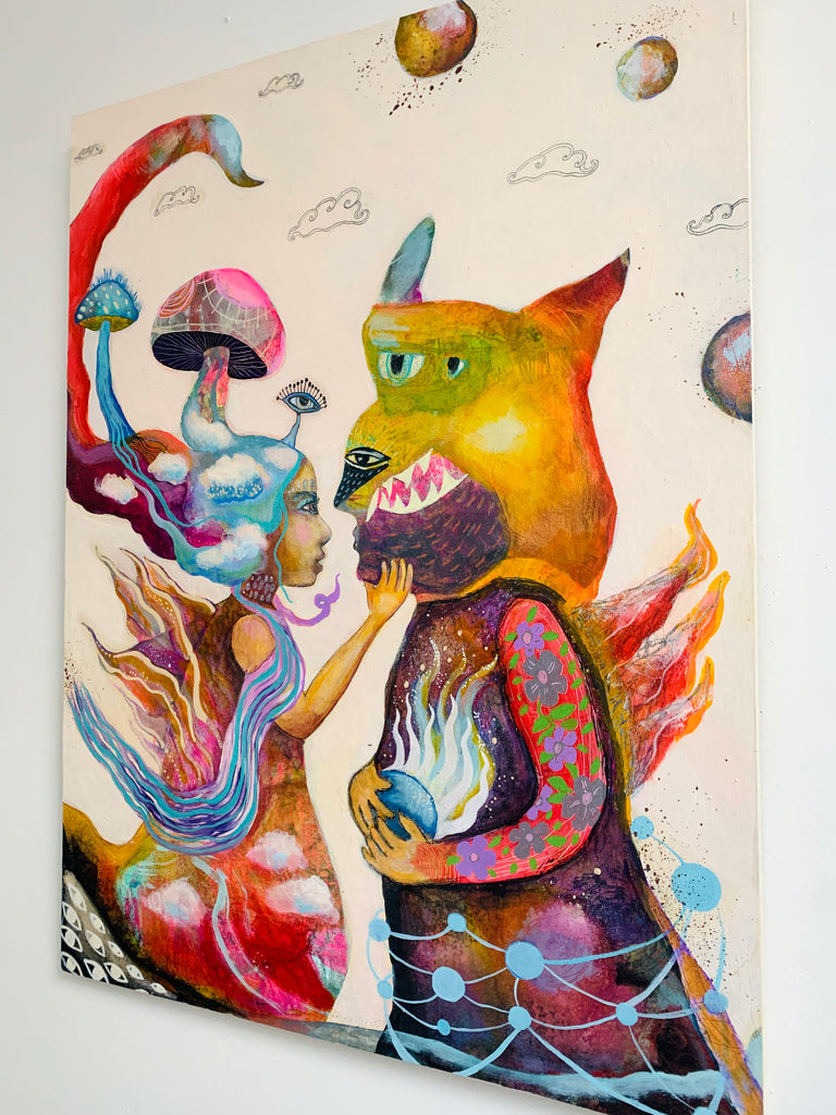Original acrylic painting on heavyweight art paper amounted on the wood.